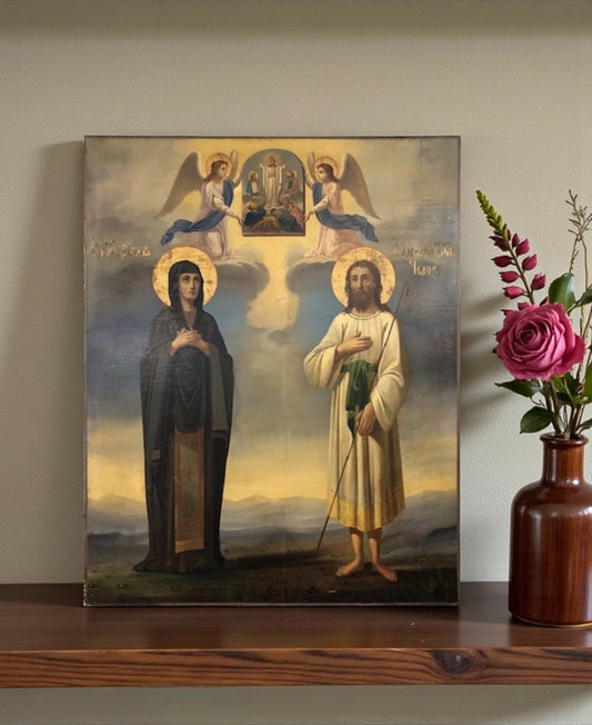 Saints Martha and Mary. Wooden orthodox icon