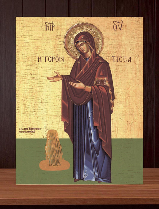 Mother of God Virgin Mary the Theotokos "Gerontissa", “Abbess” or “Elderly Lady”. Wooden orthodox icon