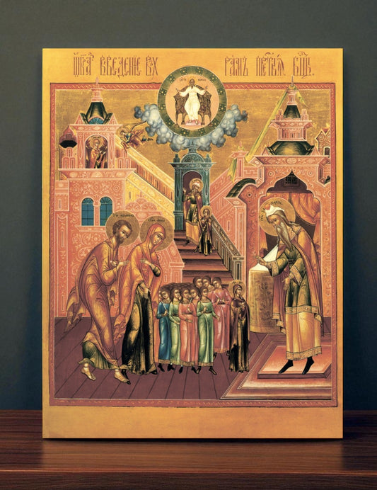 Mother of God Virgin Mary the Theotokos "Introduction to the Temple". Wooden orthodox icon