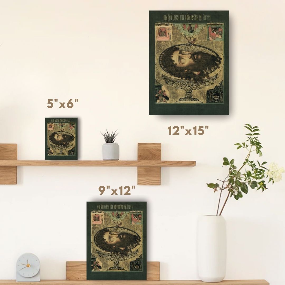 Mother of God Icon “The Unburnt Bush” Orthodox Fire Protection Icon Handmade Wooden Wall Art Theotokos with Angels and Evangelists