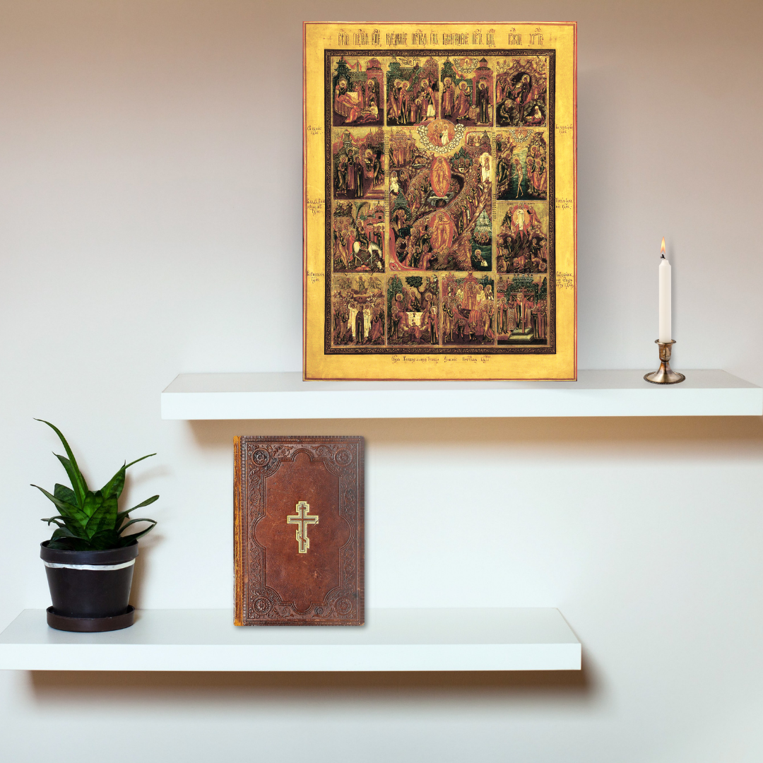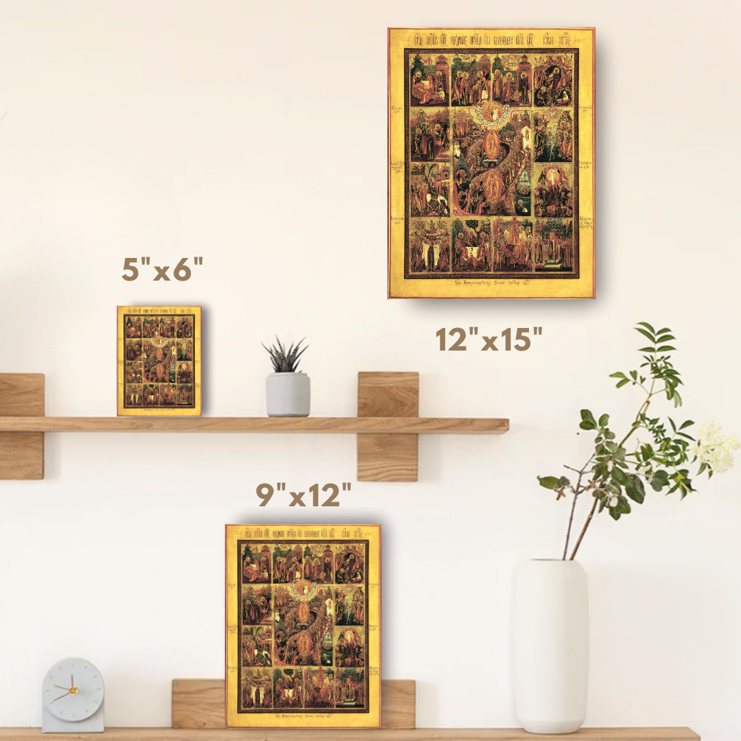 Synaxis of All Saints with Gospel Feasts Orthodox Wooden Icon