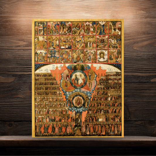 Nossos ícones são feitos por artesãos ortodoxos. Você pode ler mais sobre a tecnologia aqui : https://iconsofsaints.com/pages/how-is-the-icon-made