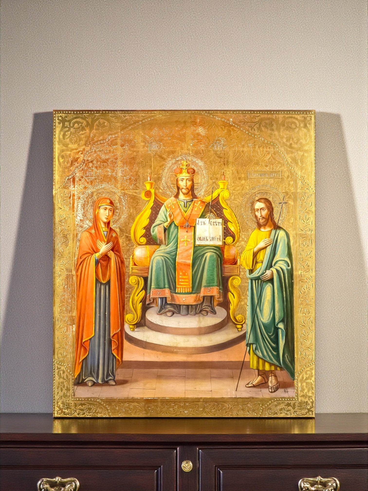 Ícone de madeira: O Senhor Todo-Poderoso no trono (Ícone da Deesis)