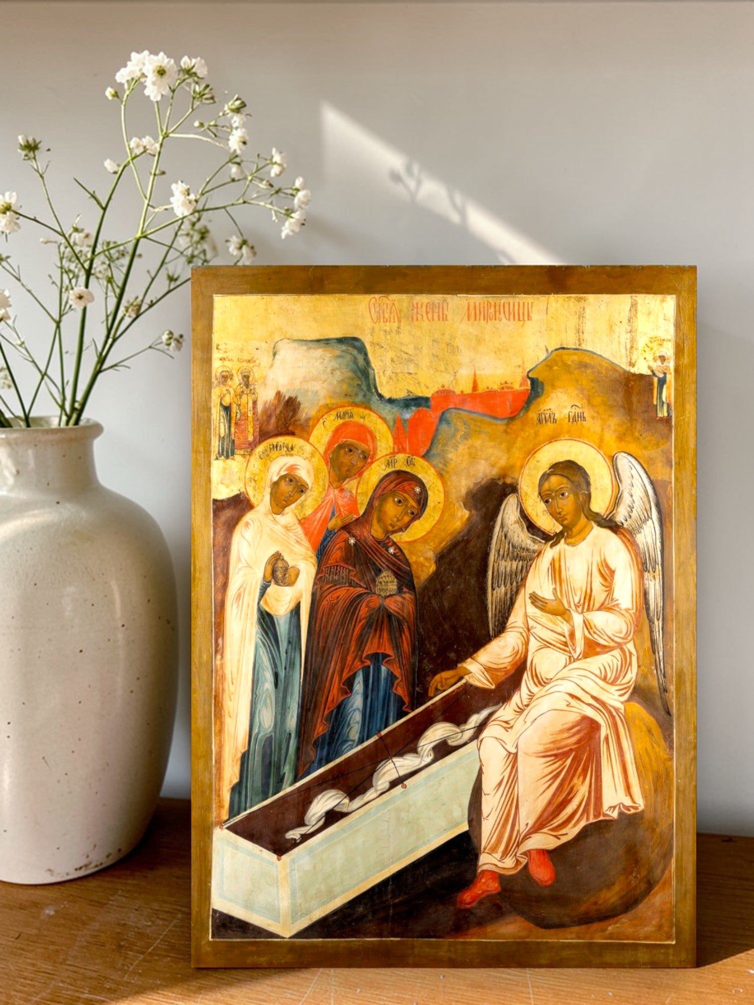 As Mulheres Miróforas. Ícone ortodoxo de madeira