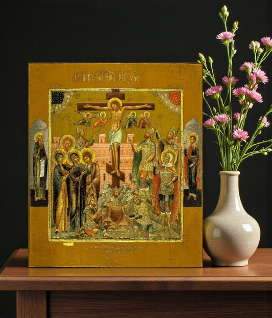 A Crucificação de Jesus Cristo. Ícone ortodoxo de madeira.